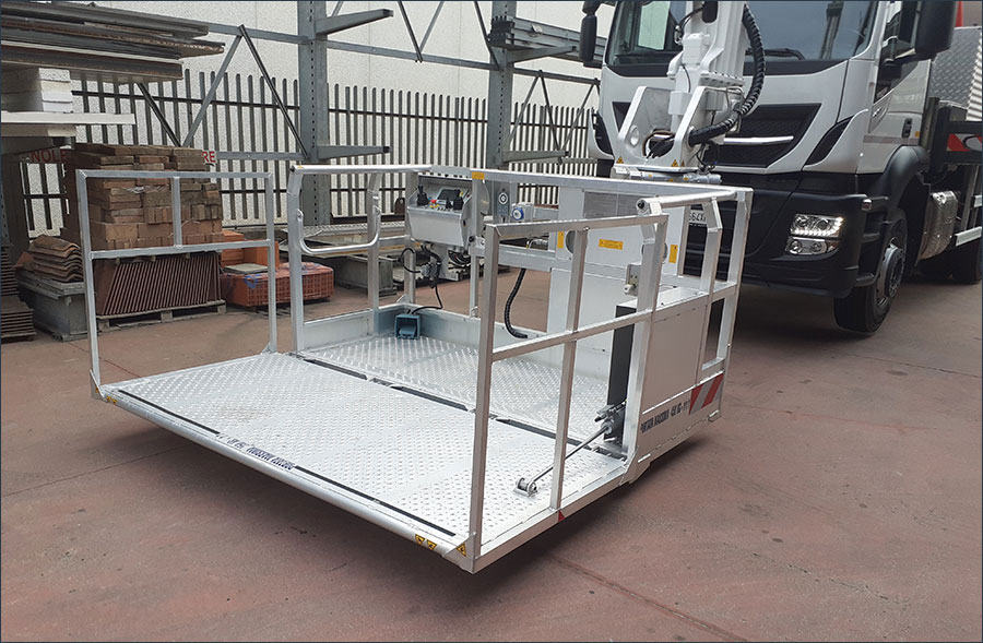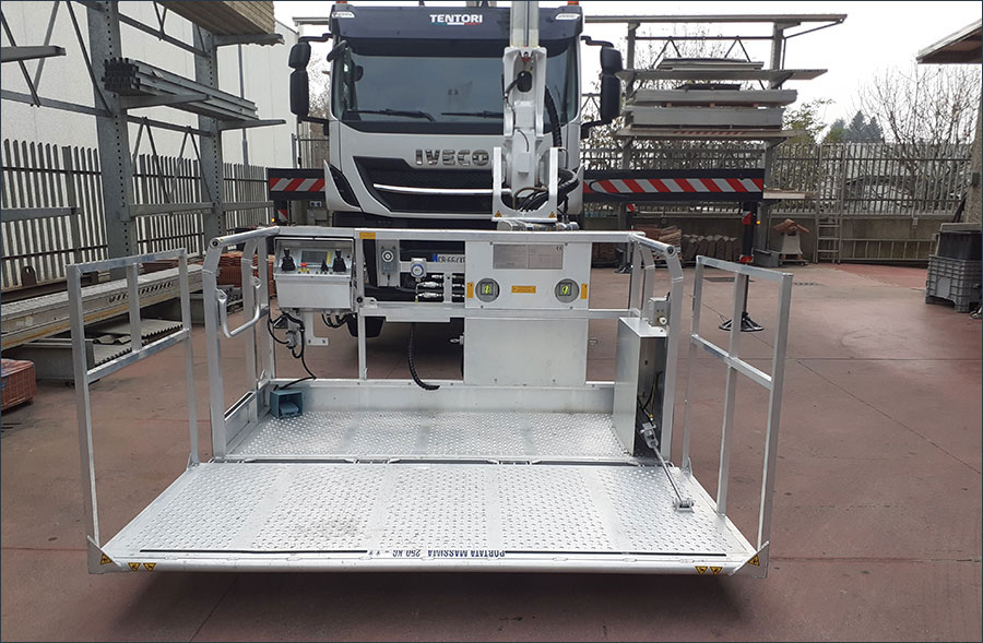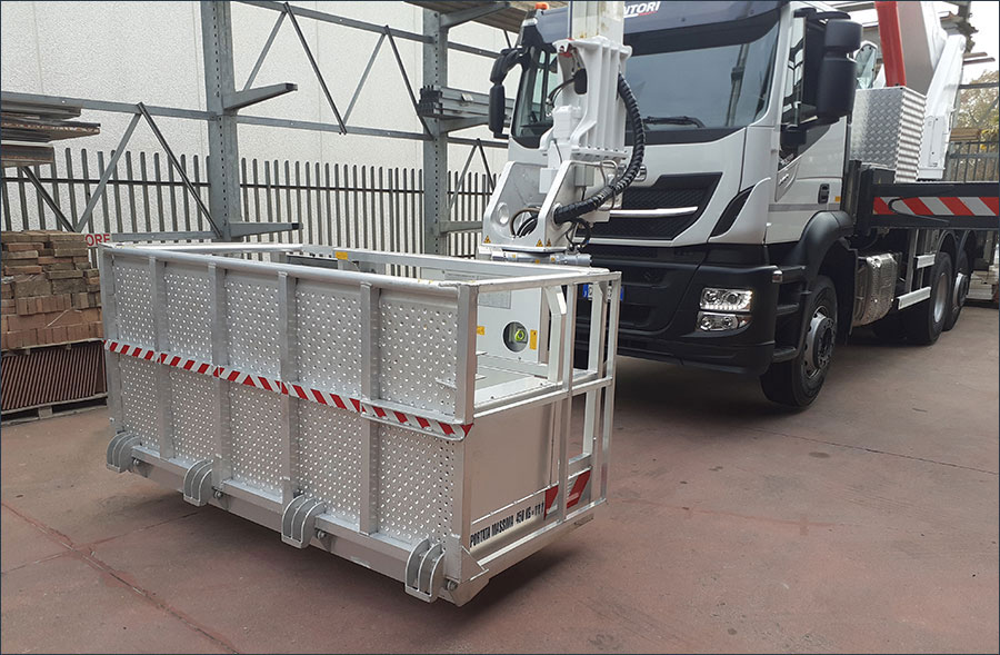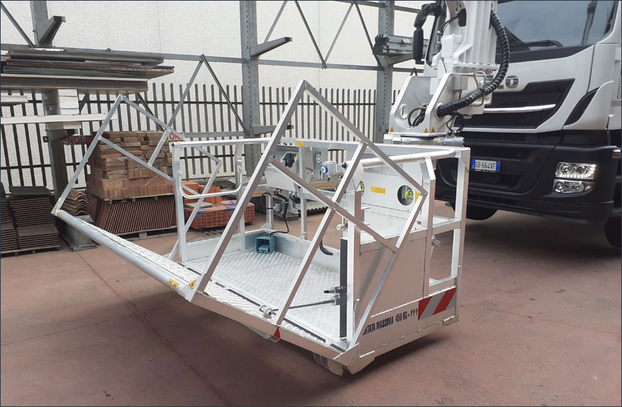 L’innovativo Cestello abbattibile in azione della Piattaforma Aerea Autocarrata Multitel Pagliero MJ420